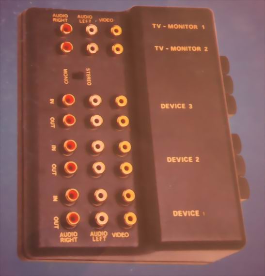 audio-video profesional Consiste de 3 entradas audio-video y otras 3 salidas audio-video controladas cada una de ellas mediante pulsador de conmutación. |